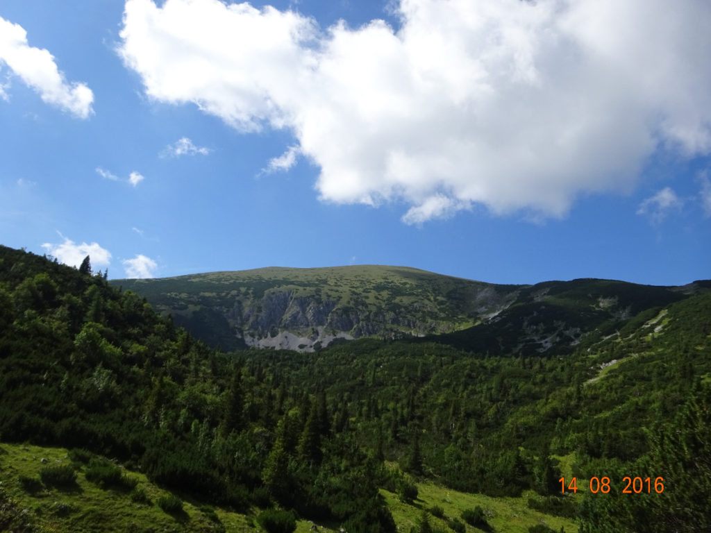 In Hinternaßwald starte ich und gehe entlang des Reißbaches durch die Reißtal Klamm zum Rehboden. Nachdem ich den Güterweg endlich verlassen konnte geht es schon steiler bergauf zur Wildfährte. Jetzt geht es noch ein steiles Stück über ein Geröllfeld zum Einstieg in den Klettersteig. Nachdem ich das Klettersteigset angelegt habe kann es los gehn. Zuerst steige ich also die Wildfährt hinauf und genieße zwischendurch auch das herrliche Panorama, bis ich zur Abzweigung zum Bärenlochsteig komme. Nach kurzem Überlegen entscheide ich mich für den Bärenlochsteig. Am Bärenloch, dem Ende des Klettersteiges angekommen, wird das Klettersteigset wieder im Rucksack verstaut und weiter geht es durch kniehohes Gras durch den Bären Graben und dann nach links durch den Krummtal Graben bis ich endlich zum Habsburghaus komme, wo ich mich einmal stärke.