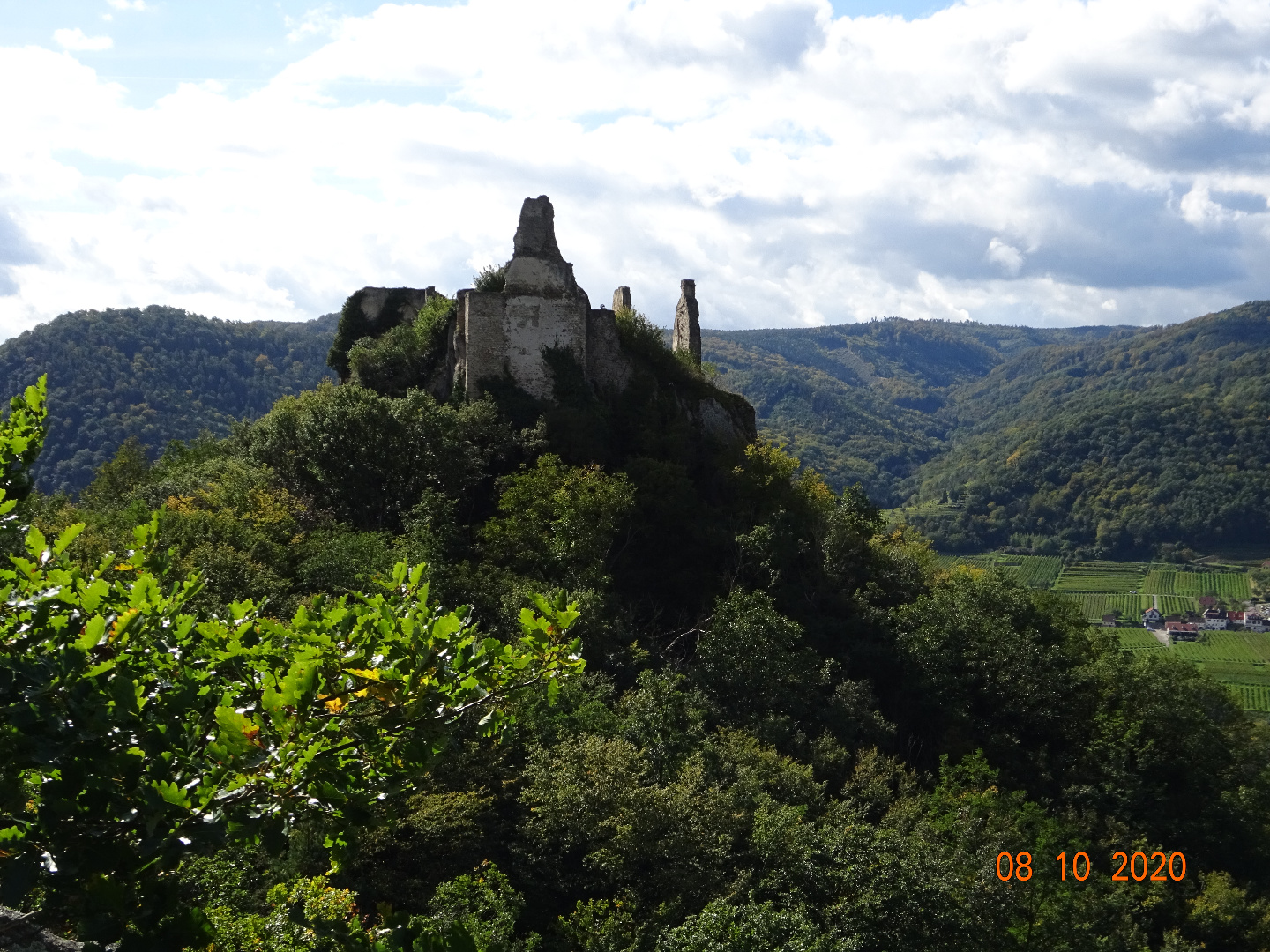 Wieder zurück am Wanderweg, marschier ich jetzt auf angenehmen Wegen zur Fesslhütte und weiter zur Starhembergwarte. Zum Glück ist diese offen und über eine schmale Wendeltreppe geht es rauf. Ein paar Fotos und es geht weiter, zur Ruine Dürnstein, der ich natürlich ebenfalls einen Besuch abstatte.